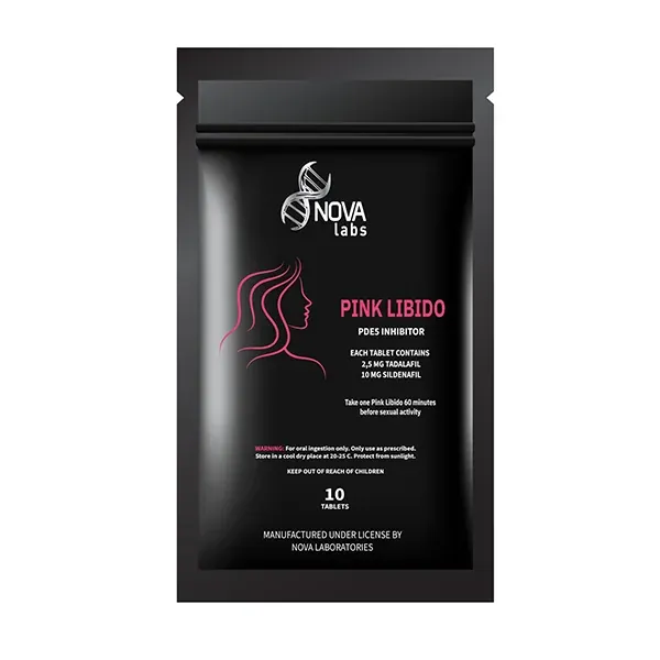 N/A | 10 Tabs Nova Labs Pink Libido is formulated to support enhanced libido and sexual performance, combining 0.5 mg Tadalafil and 10 mg Sildenafil. This blend leverages both compounds for increased blood flow, potentially offering enhanced arousal and performance.